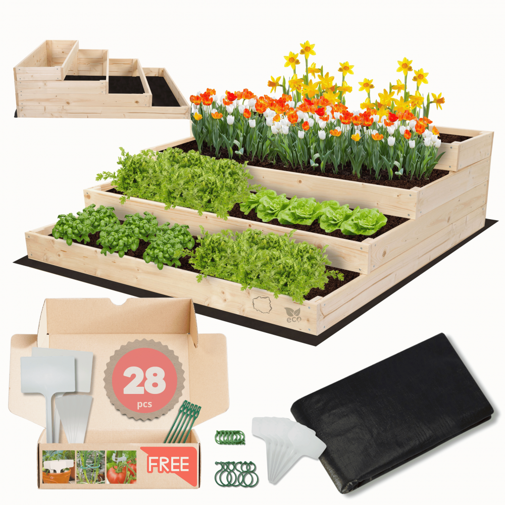 - W zestawie agrowłóknina oraz zestaw akcesoriów ogrodniczych.