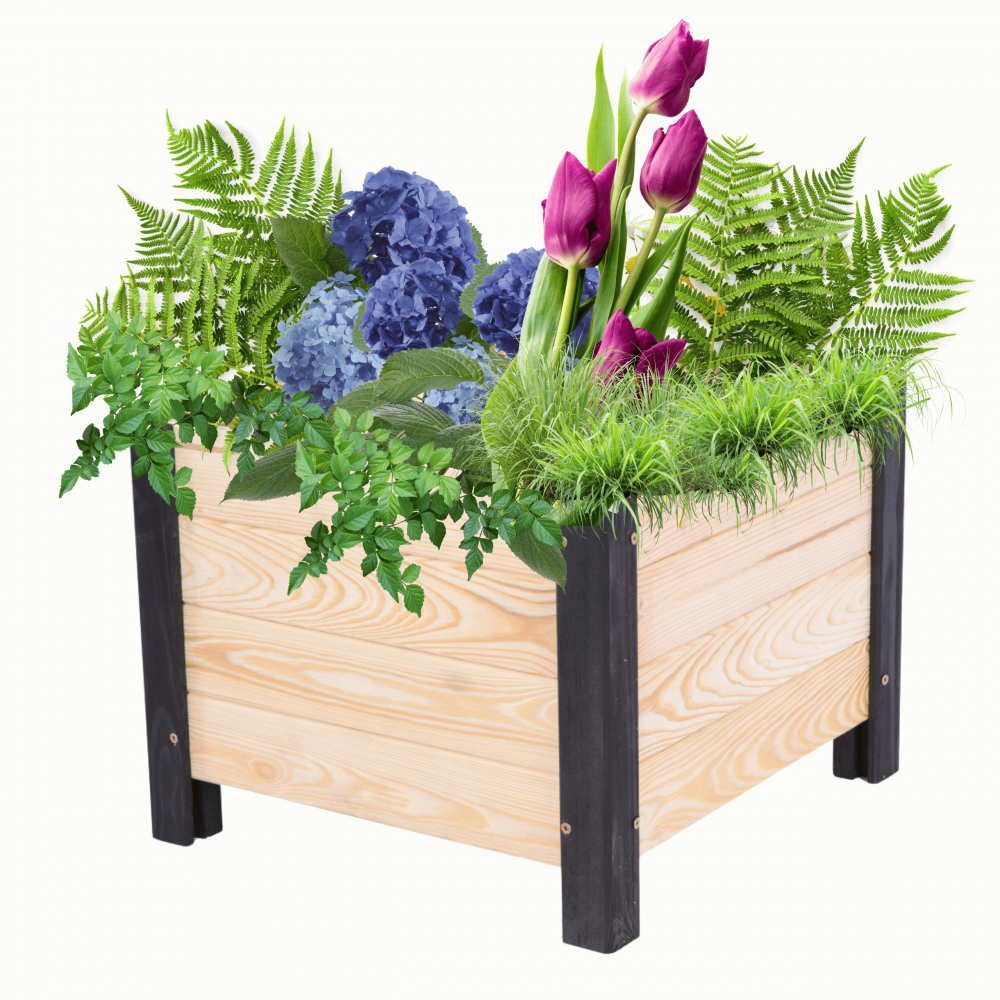 Seria DNC to starannie wykończone donice z pełnych desek, przeznaczone do dekoracji pomieszczeń zamkniętych oraz obszarów na zewnątrz budynków.