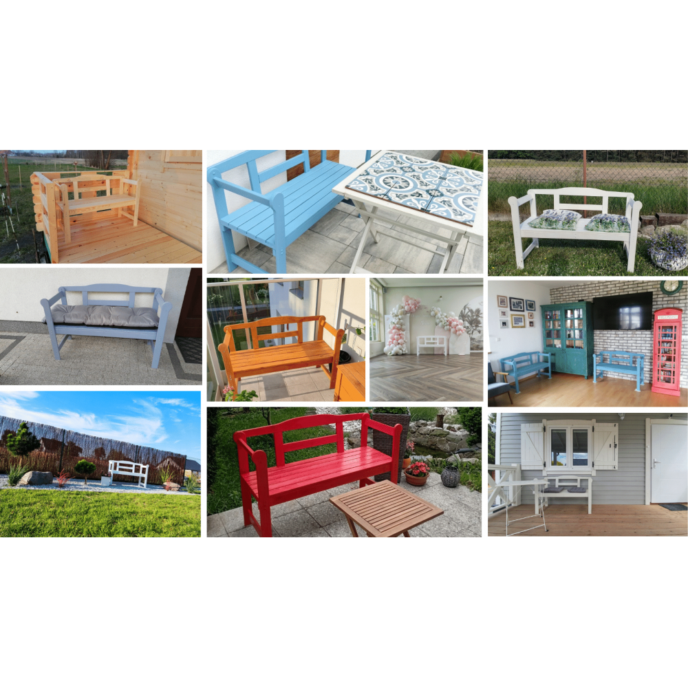 Na innych aukcjach Allegro znajdziesz naszą ławkę w różnych wykończeniach – naturalny kolor (bez impregnacji), przezroczysty impregnat, brązowy oraz szary.