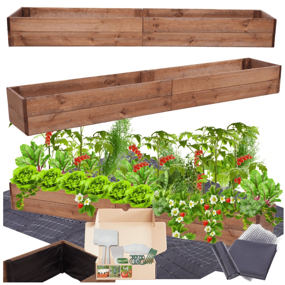 ✅ Pełny zestaw – w komplecie agrowłóknina, siatka na krety, folia i akcesoria ogrodnicze. Możliwość dokupienia folii kubełkowej wraz z mocowaniami do zabezpieczenia drewna od wewnątrz przed wilgocią.