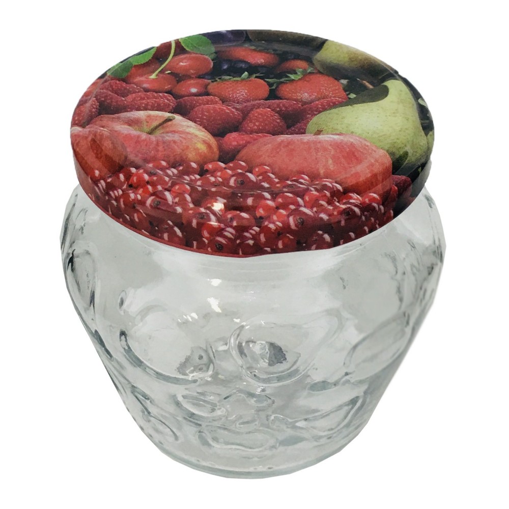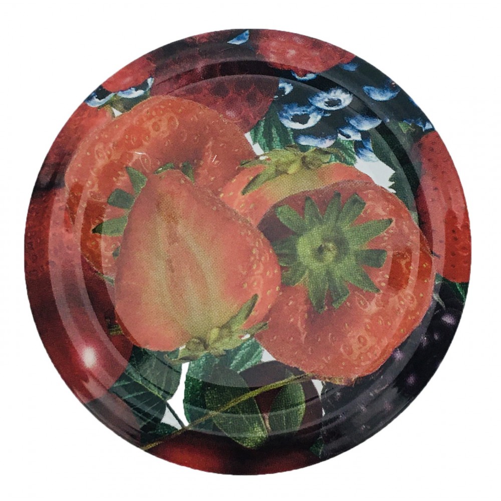 Wieczko z designem owocowym o średnicy 66 mm wyposażone jest w uszczelkę B-15, dzięki której poza przecierami, sokami, czy produktami o stałej konsystencji, można również przechowywać w słoiku substancje oleiste.