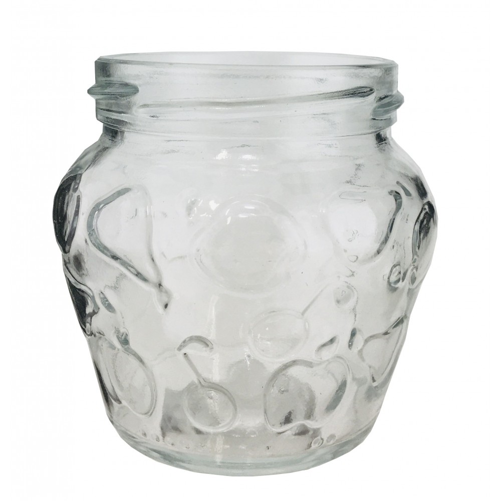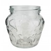Dekoracyjny słoik na przyprawy lub konfitury, wykonany z bezbarwnego ażurowego szkła o pojemności 215 ml.