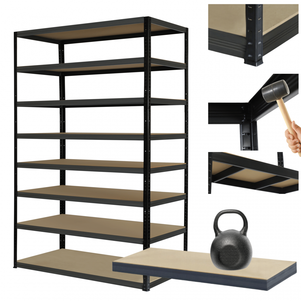 - Nośność na 1 półkę: 175 kg (aby otrzymać udźwig całego regału pomnóż ilość półek razy nośność jednej półki, cały regał może mieć nośność aż 2400kg!)