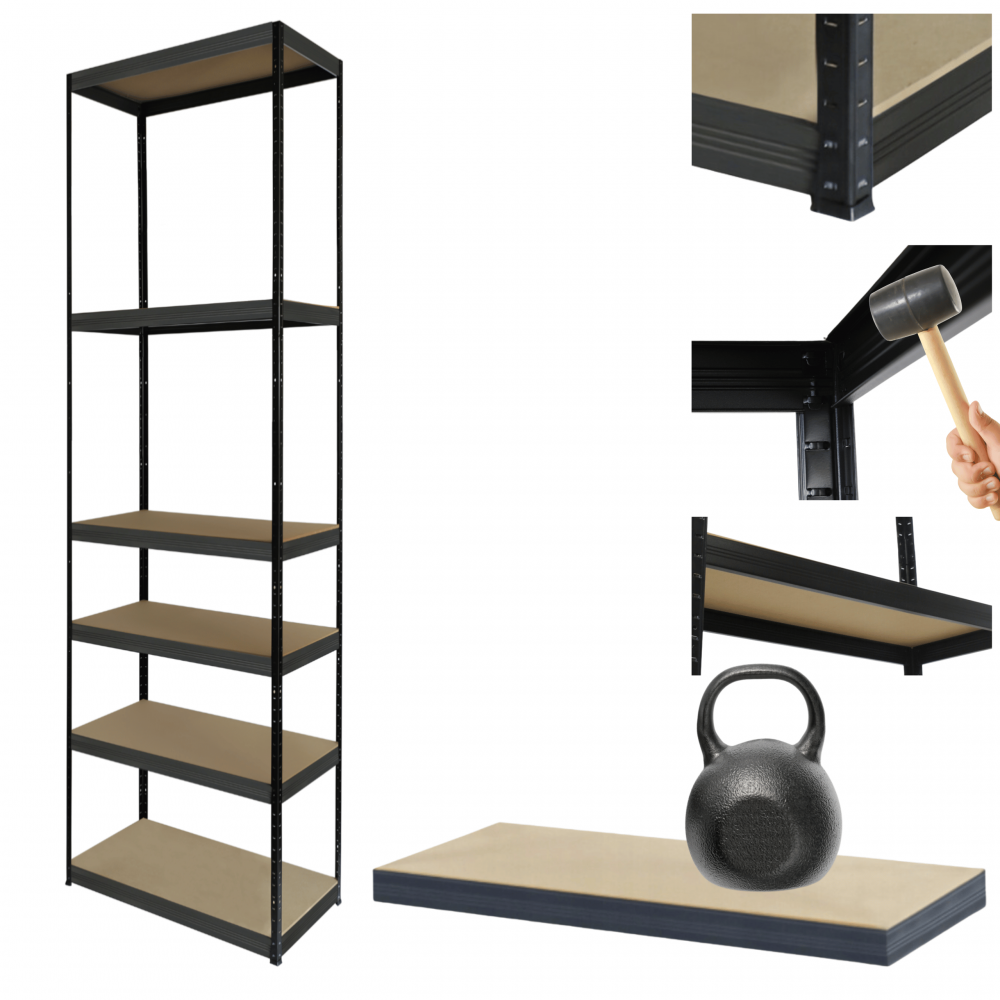 - Nośność na 1 półkę: 175 kg (aby otrzymać udźwig całego regału pomnóż ilość półek razy nośność jednej półki, cały regał może mieć nośność aż 2400kg!)