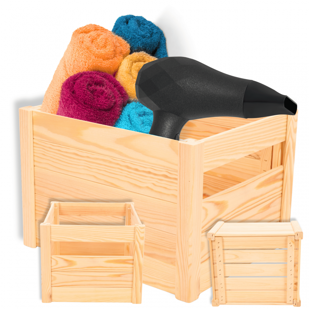 - Wytrzymałe drewniane boki i dno.