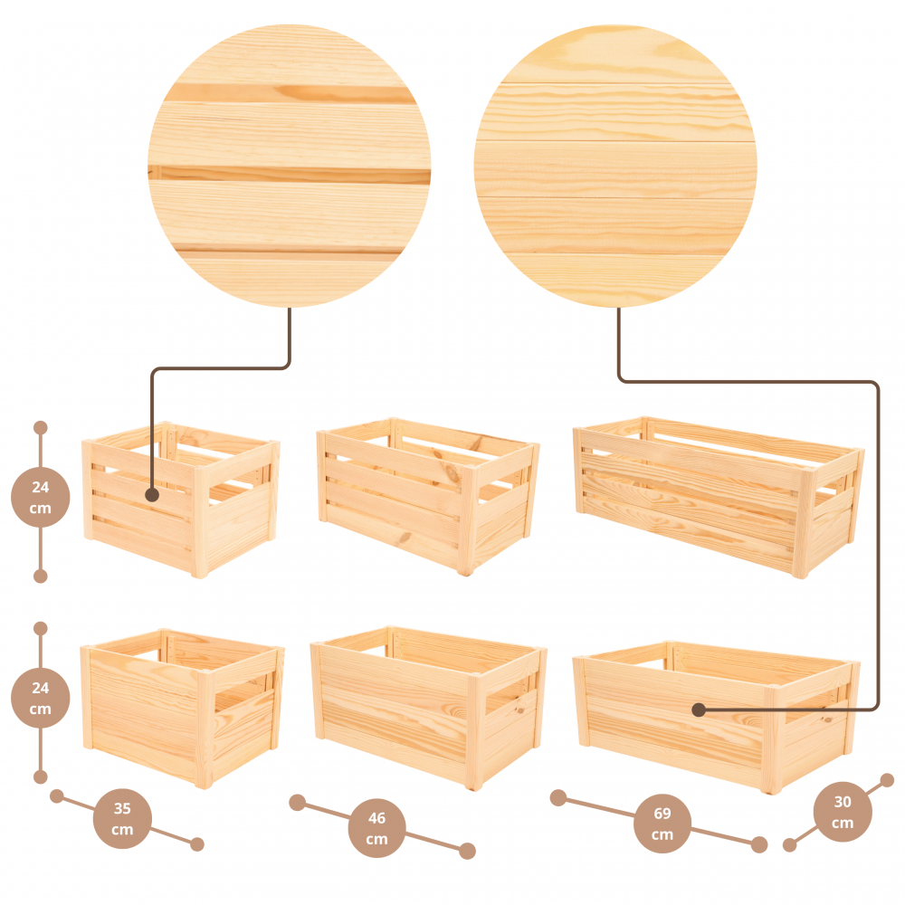 Skrzynka na warzywa owoce skrzynki DREWNIANE DNO 35x30 cm PEŁNY BOK EKO