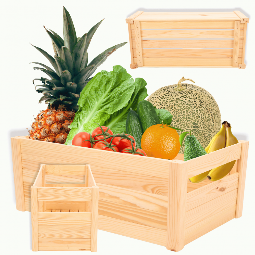 Skrzynka na warzywa owoce skrzynki DREWNIANE DNO 69x30 cm PEŁNY BOK EKO