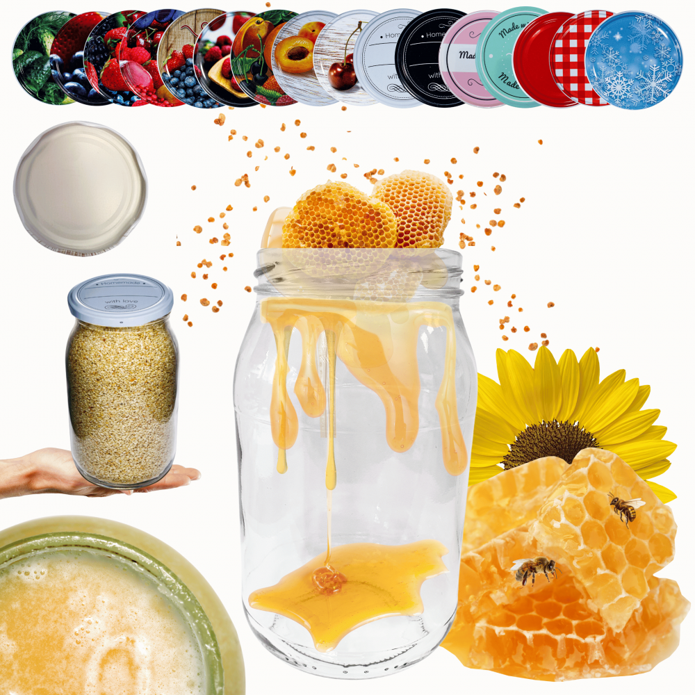 Oferujemy duży wybór wzorów nakrętek, dzięki czemu bez przeszkód dopasujesz wygląd słoika do jego przyszłej zawartości.