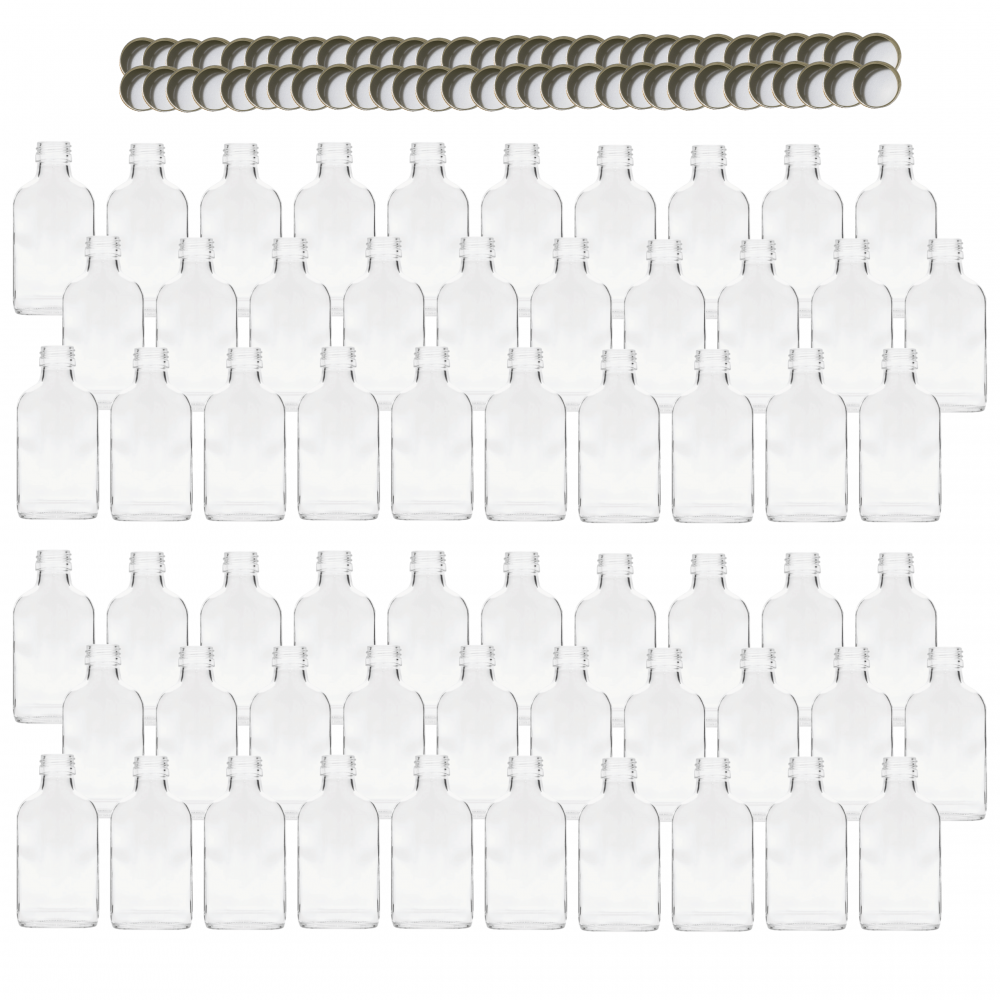 Butelki 100 ml piersiówki płaskie na sok nalewki fi28 60szt NAKRĘTKI PZH