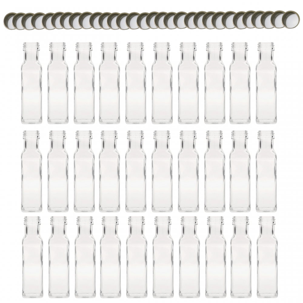 - Ilość w zestawie: 30 sztuk (butelki + zakrętki)