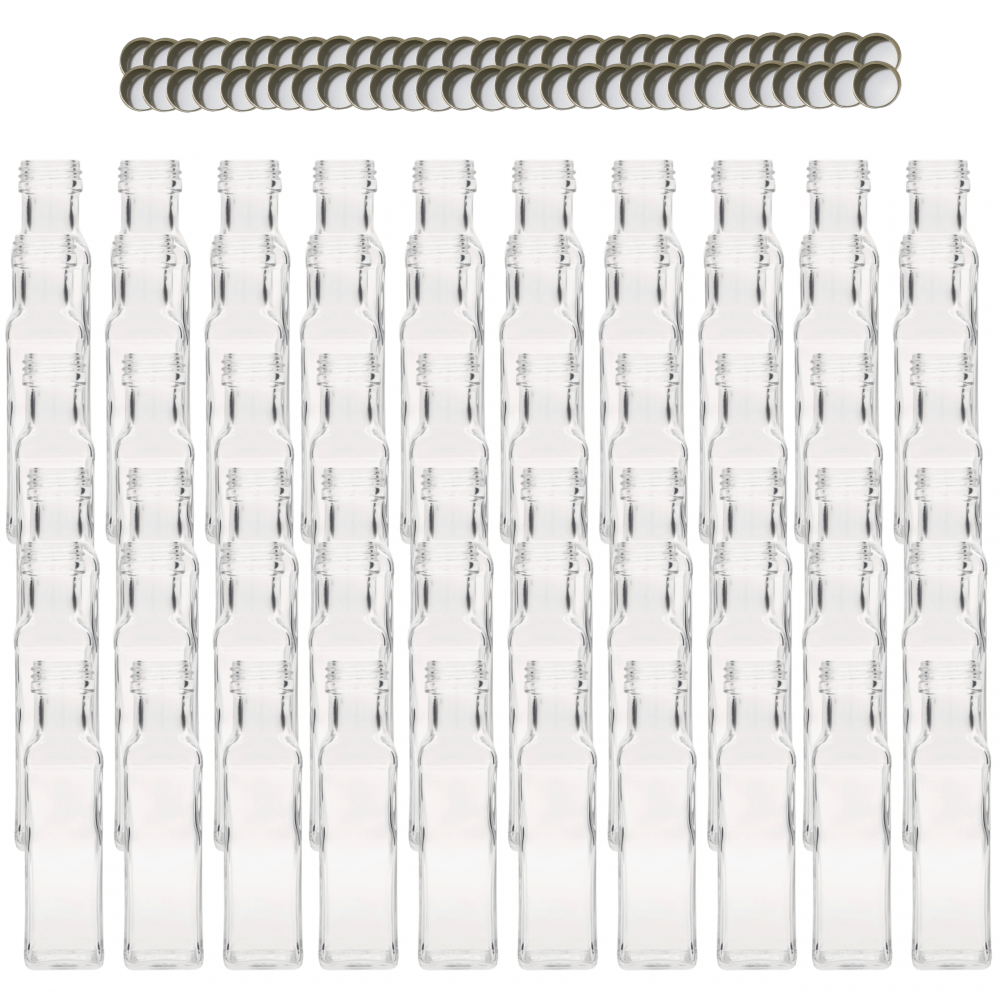 Butelki 100 ml maraski kwadratowe soki na olej oliwę fi31 60szt NAKRĘTKI