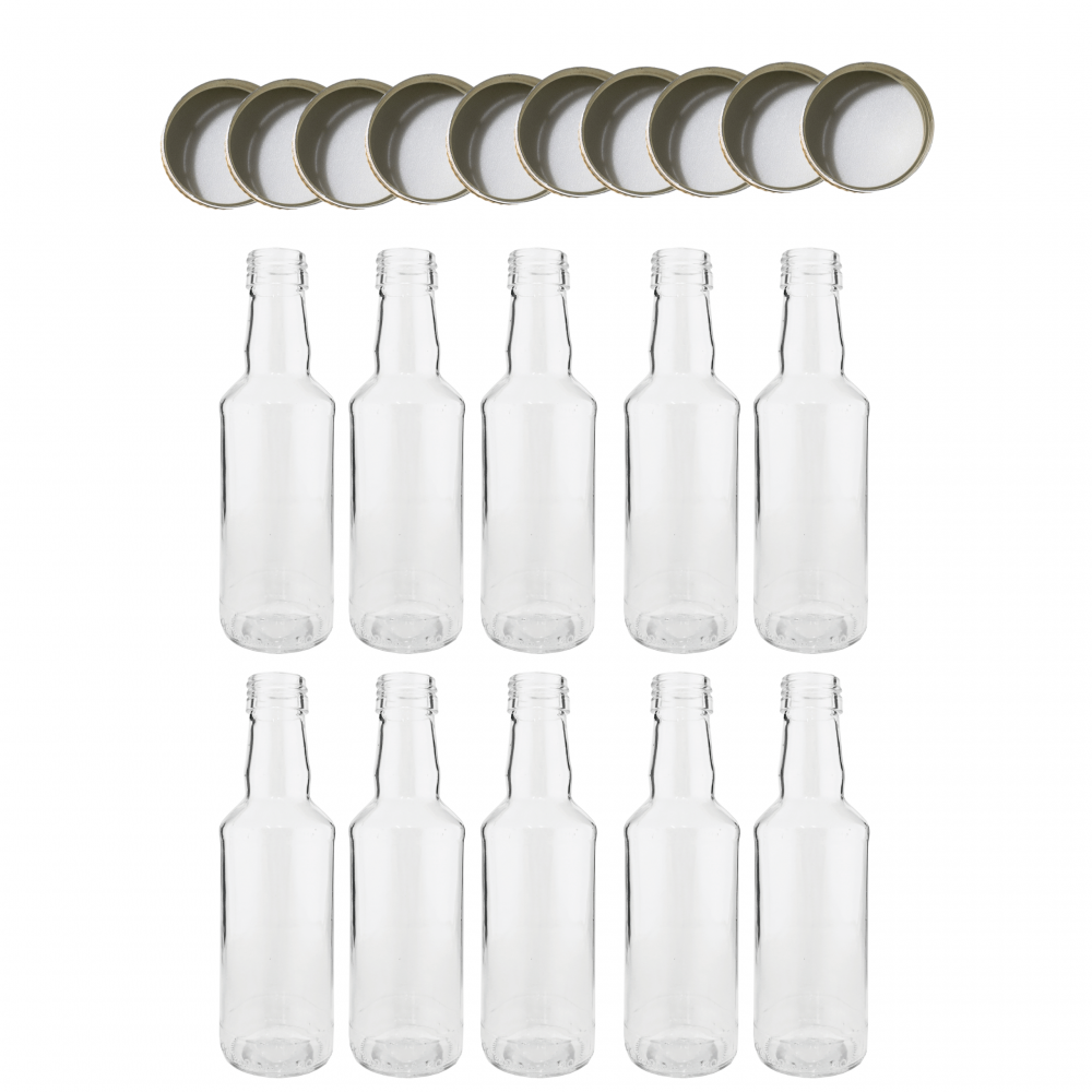 - Ilość w zestawie: 10 sztuk (butelki + zakrętki)
