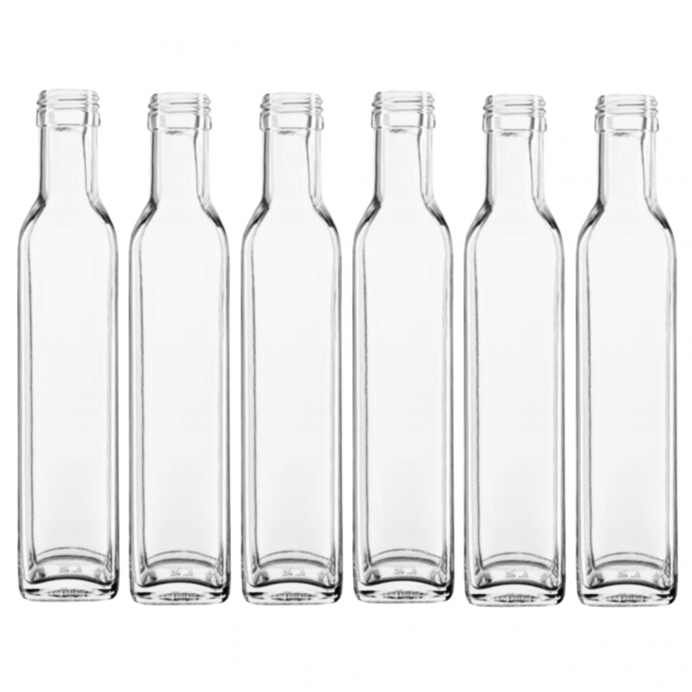 Butelki 250 ml maraski kwadratowe soki na olej oliwę fi31 6szt BEZ NAKRETEK