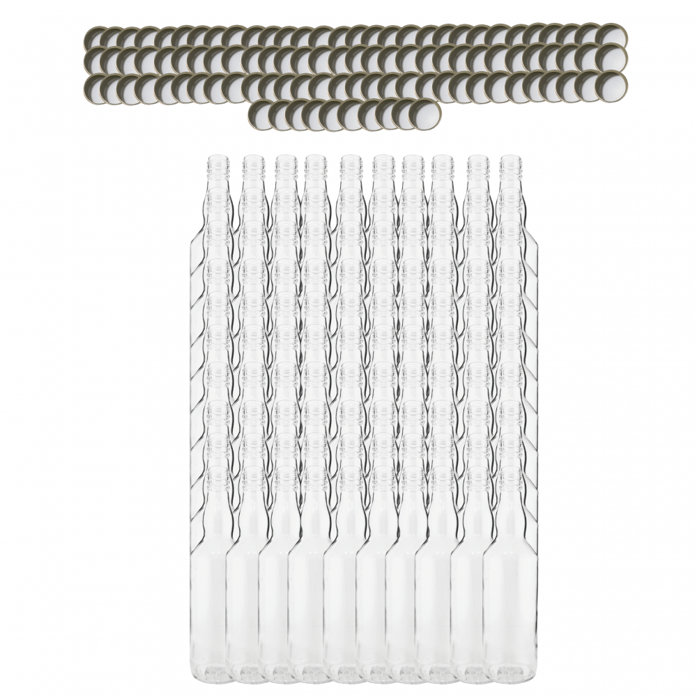 - Ilość w zestawie: 100 sztuk (butelki + zakrętki)