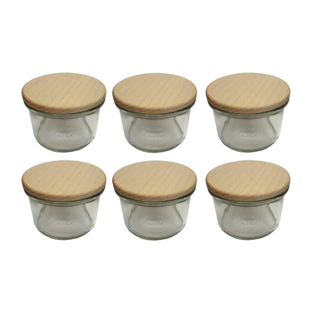 Słoiki Weck 200ml pucharek MOLD żaroodporne drewniane wieka 6szt SOLIDNE