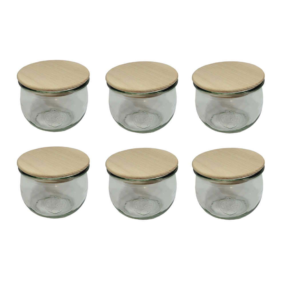 Słoiki Weck 370ml przetwory TULIP żaroodporne drewniane wieka 6szt SOLIDNE