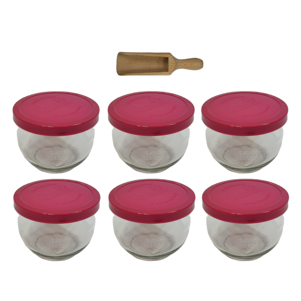 Słoiki Weck 580ml 0,5L słoik TULIP żaroodporne silikonowe wieko 6szt miarka