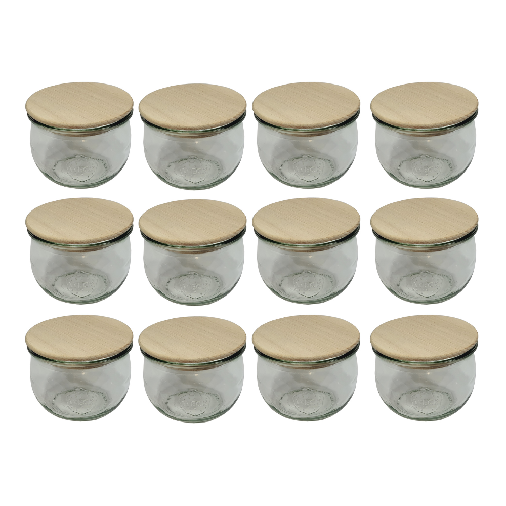 Słoiki Weck 580ml 0,5L przetwory TULIP żaroodporne drewniane wieka 12szt