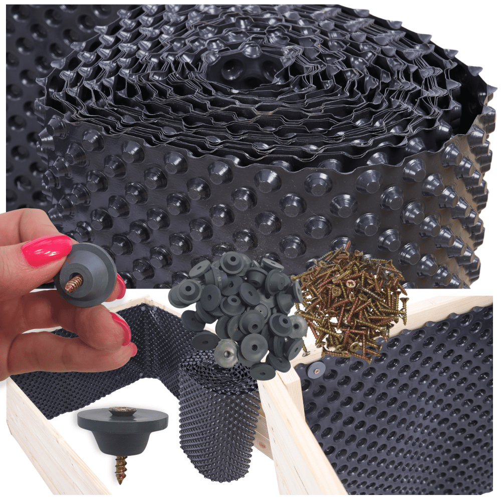 ✅ Praktyczny system montażu – folia kubełkowa mocowana do drewnianej konstrukcji przy pomocy dedykowanych podkładek i wkrętów. Specjalnie zaprojektowane podkładki idealnie dopasowują się do kubełków folii, zapewniając stabilne i trwałe mocowanie.