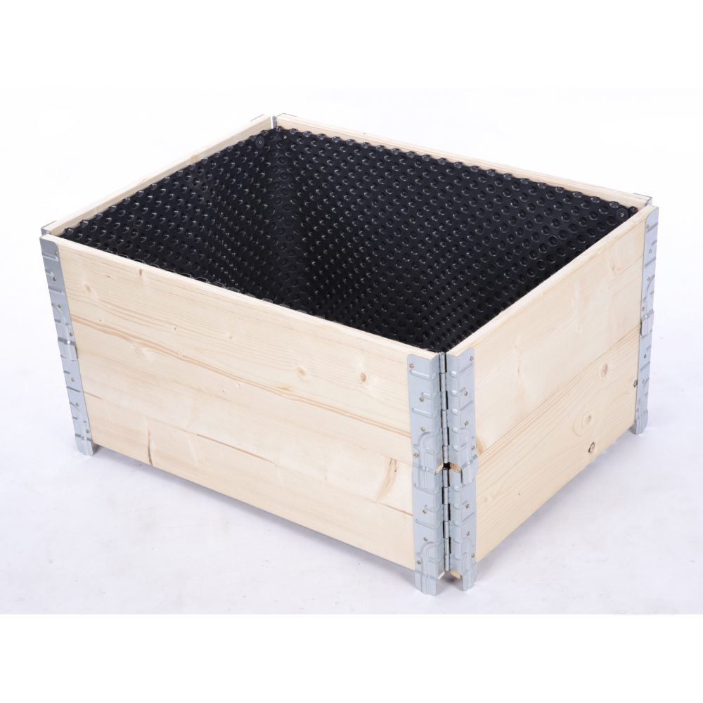 ✅ Cyrkulacja powietrza między kubełkami – dzięki strukturze folii drewno pozostaje suche i nie gnije, co pozwala na dłuższe użytkowanie grządki.