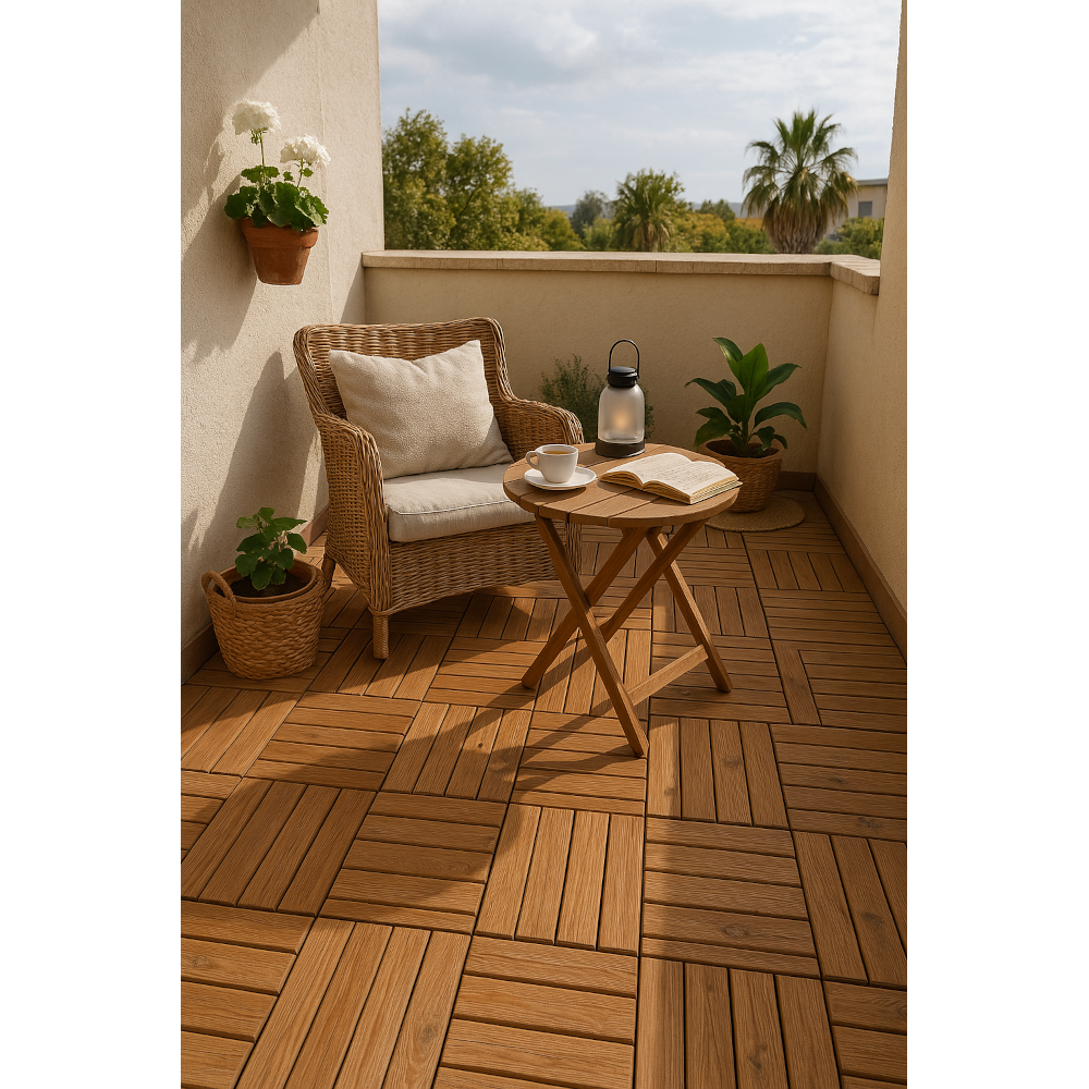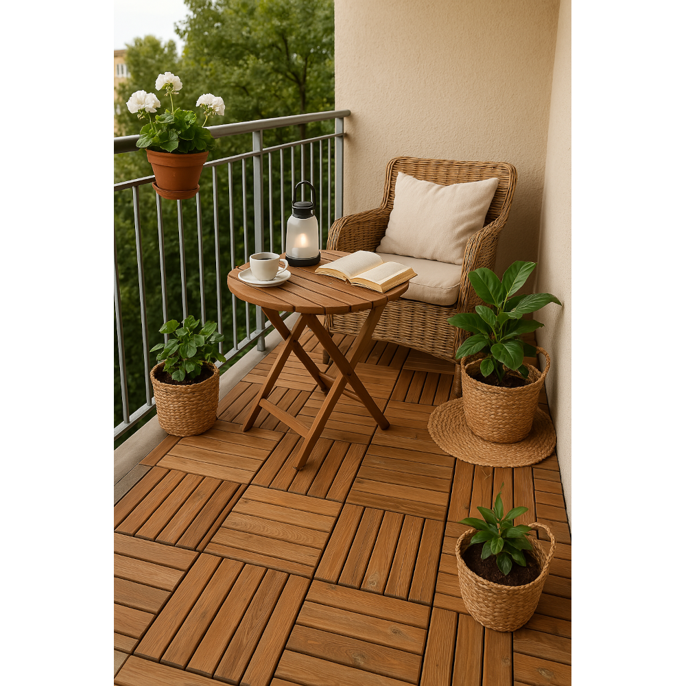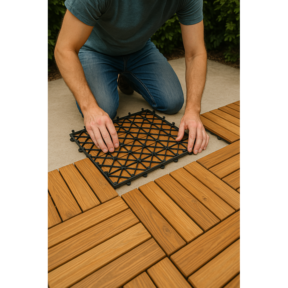 Drewniane płytki tarasowe impregnowane – szybki montaż bez narzędzi! Zestaw 11 szt - 1m2.
