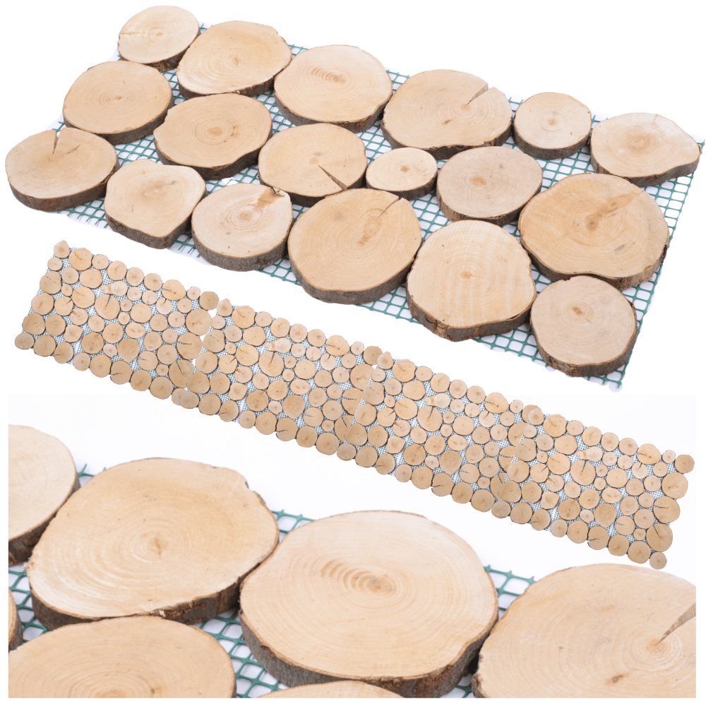 ✅ Ekologiczna drewniana ścieżka do ogrodu – z plastrów drewna bukowego zamocowanych na trwałej siatce.