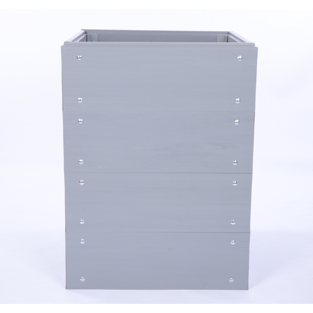 Plastikowa grządka warzywniakowa cechuje się modułową konstrukcją, co pozwala na łatwe łączenie jej elementów i tworzenie kolejnych pięter.