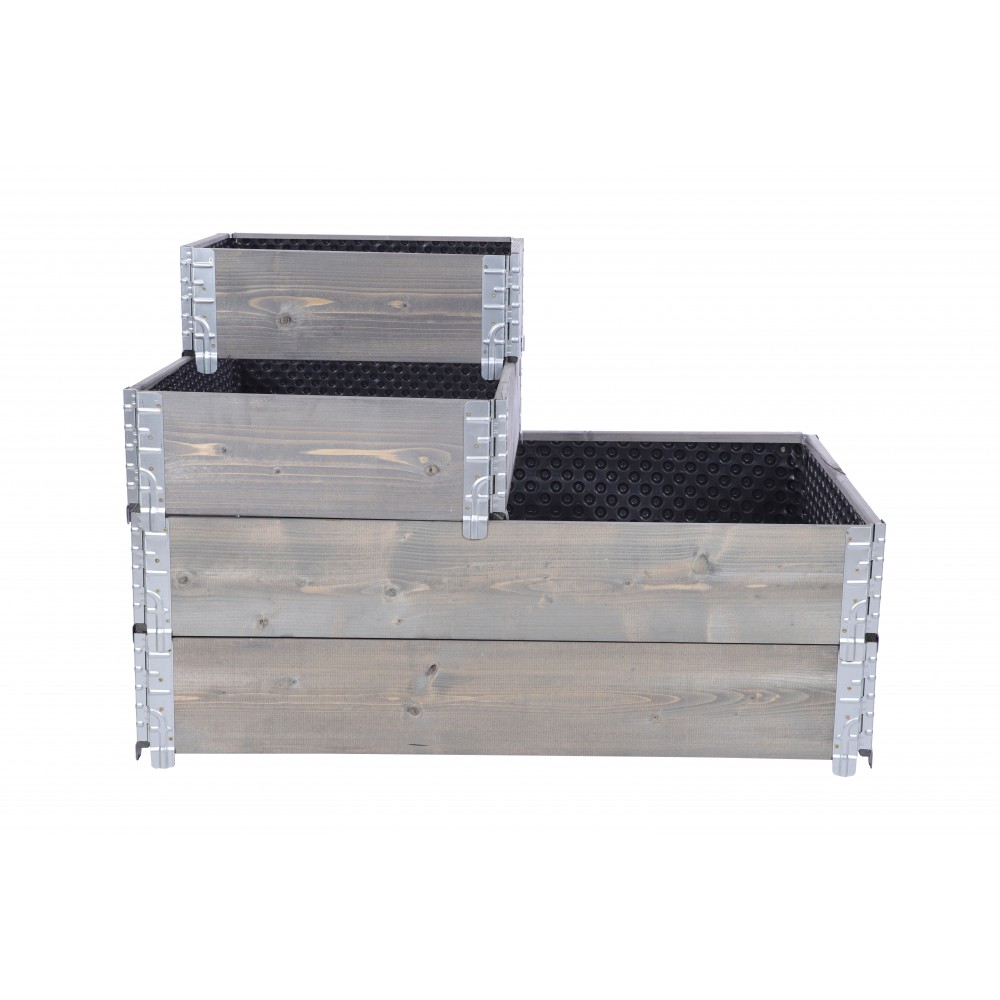 Oferujemy skrzynie na warzywa w różnych wysokościach (9, 18, 27, 36, 45, 54 cm), a także grządki z podziałem, kaskadowe – zwykłe i narożne oraz kaskadowe z regulowanymi piętrami. Wszystkie dostępne w czterech kolorach – naturalnym, przezroczystym, brązowym i szarym.
