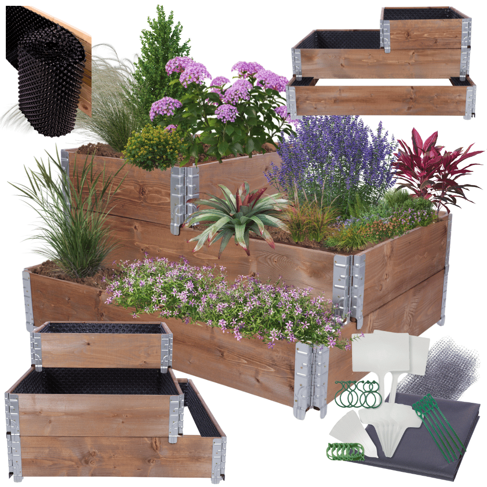 ✅ Pełny zestaw – w komplecie folia kubełkowa, agrowłóknina, siatka na krety i akcesoria ogrodnicze. Możliwość dokupienia folii kubełkowej wraz z mocowaniami i ogrodniczej do zabezpieczenia drewna od wewnątrz przed wilgocią.