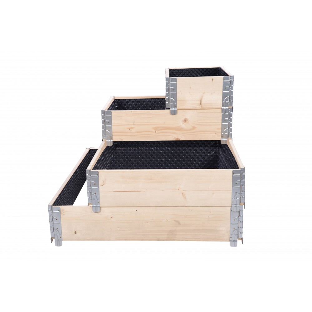 Oferujemy skrzynie na warzywa w różnych wysokościach (9, 18, 27, 36, 45, 54 cm), a także grządki z podziałem, kaskadowe – zwykłe i narożne oraz kaskadowe z regulowanymi piętrami. Wszystkie dostępne w czterech kolorach – naturalnym, przezroczystym, brązowym i szarym.