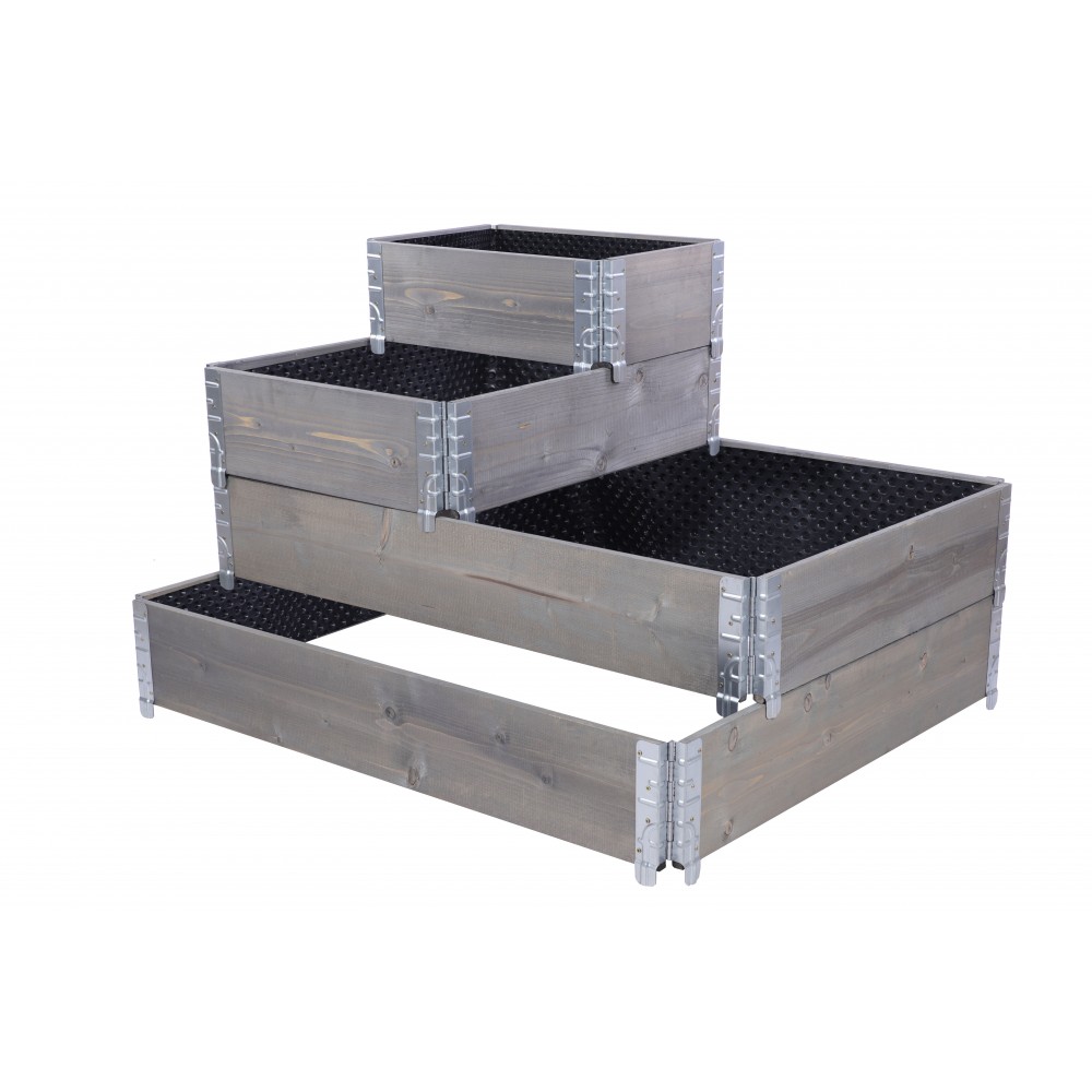 Oferujemy skrzynie na warzywa w różnych wysokościach (9, 18, 27, 36, 45, 54 cm), a także grządki z podziałem, kaskadowe – zwykłe i narożne oraz kaskadowe z regulowanymi piętrami. Wszystkie dostępne w czterech kolorach – naturalnym, przezroczystym, brązowym i szarym.