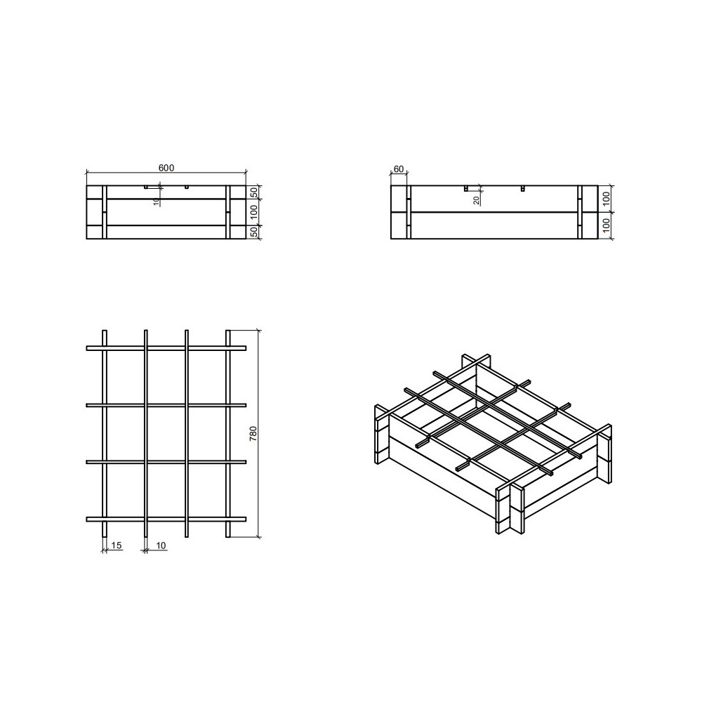 - Podział grządki na strefy segregacji uprawianych roślin dzięki cienkim listewkom ułożonym w kratę.