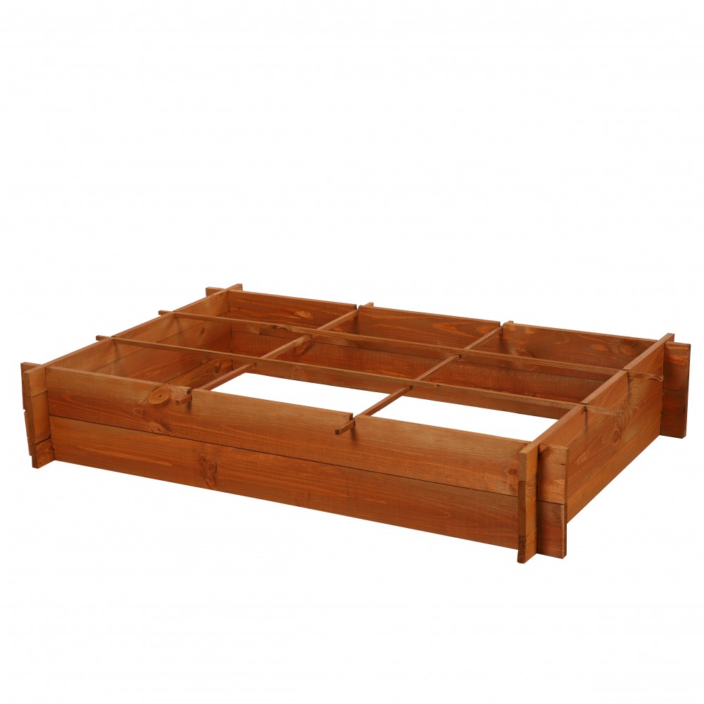 Drewniana grządka podwyższona z podziałem na sektory - ekologiczny warzywnik.