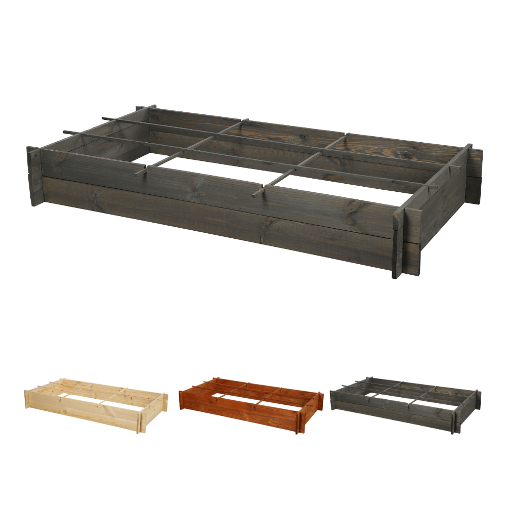 Drewniana grządka podwyższona z podziałem na sektory - ekologiczny warzywnik.
