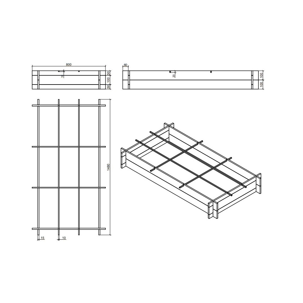 - Podział grządki na strefy segregacji uprawianych roślin dzięki cienkim listewkom ułożonym w kratę.