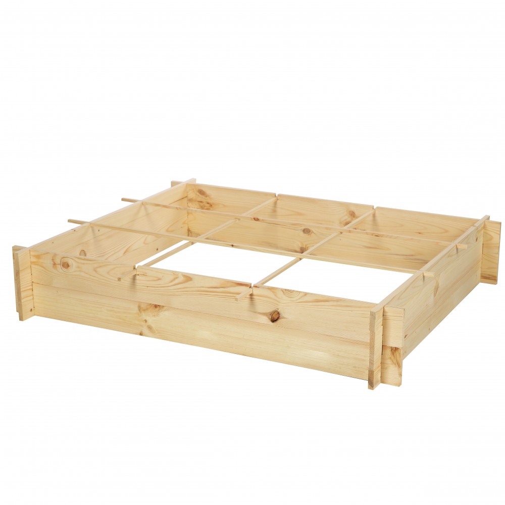 Drewniana grządka podwyższona z podziałem na sektory - ekologiczny warzywnik.