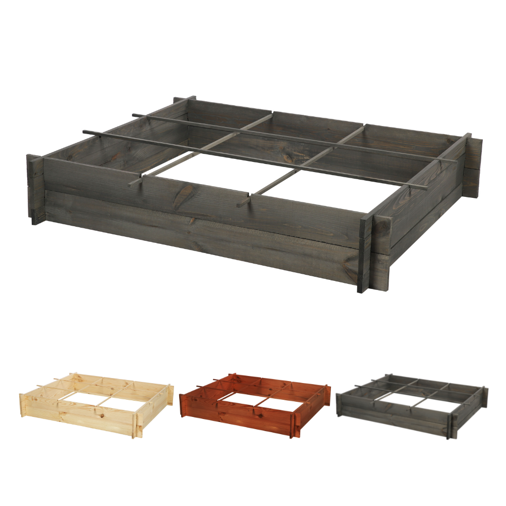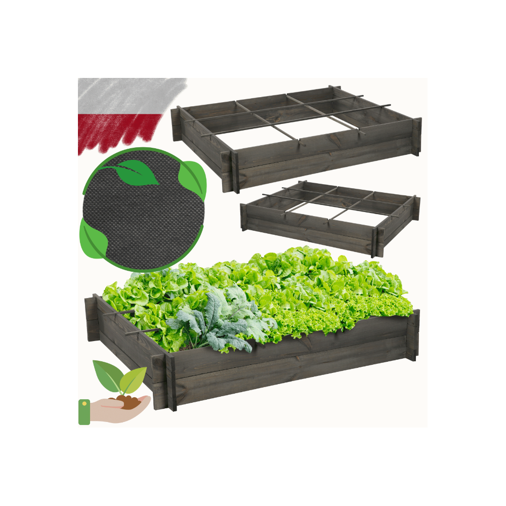 Drewniana grządka podwyższona z podziałem na sektory - ekologiczny warzywnik.