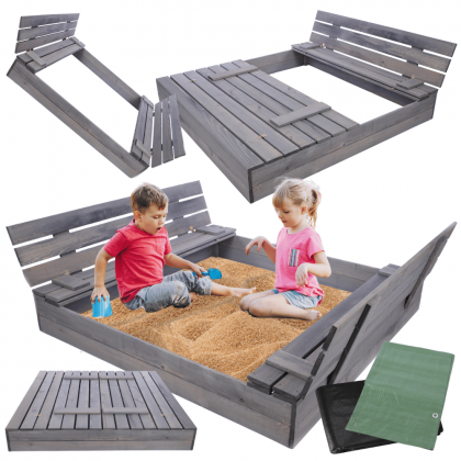 Zarejestruj sięPiaskownica impregnowana 120x120 z ławeczkami AGROWŁÓKNINA eko drewno