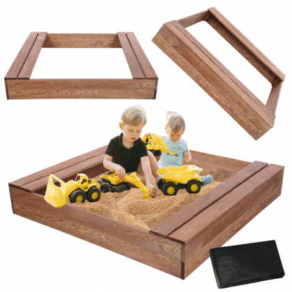 Piaskownica impregnowana 140x140 z ławeczkami AGROWŁÓKNINA pokrywa oparcie