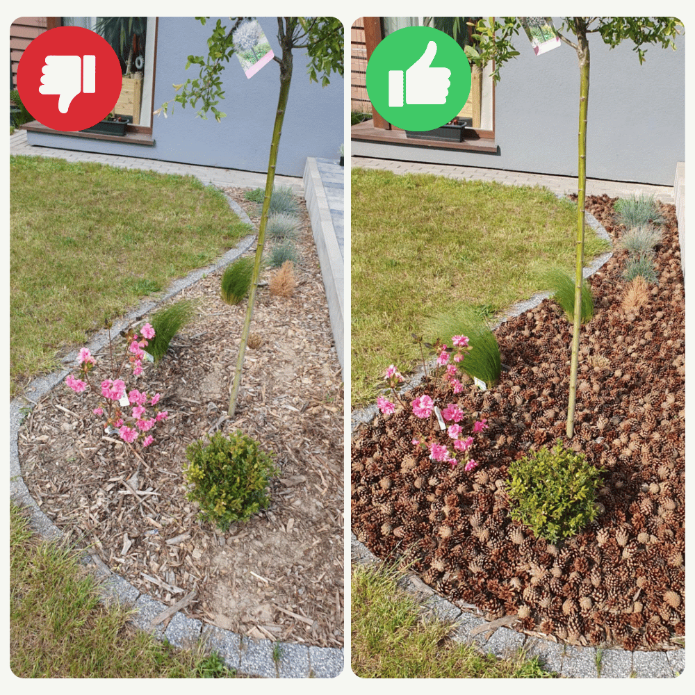 ✴️ Szyszki jako ściółka – piękna i praktyczna alternatywa dla kory.