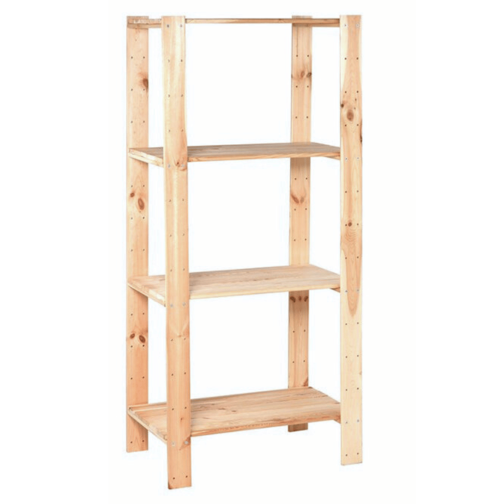 ➡️ Regał wykonano z naturalnego, litego drewna sosnowego. Konstrukcja jest solidna i wytrzymała – idealna jako regał do garażu, regał do piwnicy, regał do spiżarni czy regał gospodarczy.
