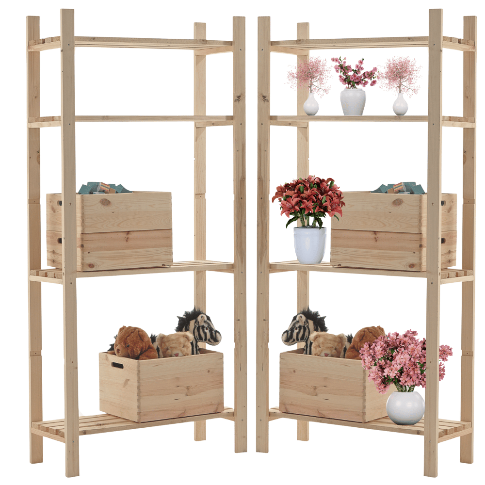 ➡️ Regał wykonano z naturalnego, litego drewna sosnowego. Konstrukcja jest solidna i wytrzymała – idealna jako regał do garażu, regał do piwnicy, regał do spiżarni czy regał gospodarczy.