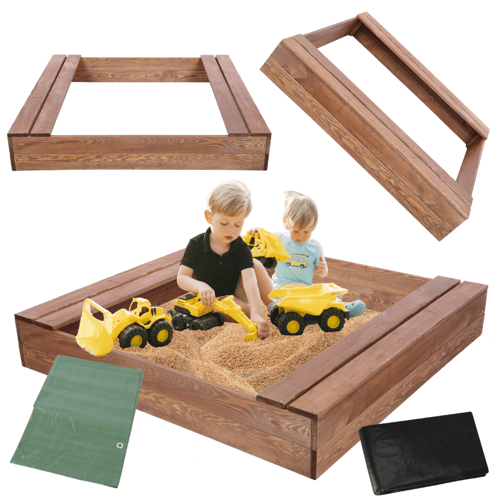 Piaskownica drewniana z ławeczkami, plandeką i agrowłókniną – trwałość, bezpieczeństwo i komfort zabawy!