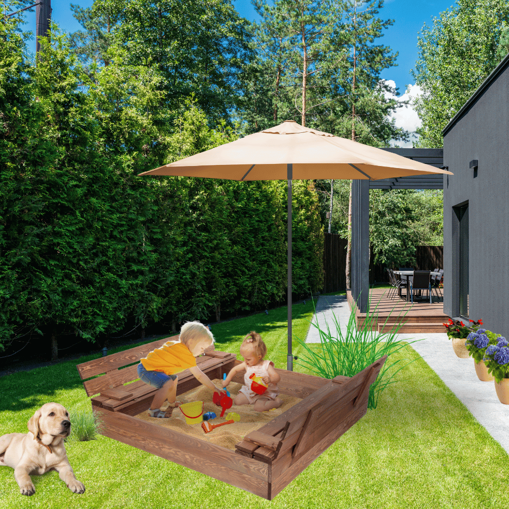 ✅ Dzieci mogą komfortowo usiąść, odpocząć i bezpiecznie korzystać z piaskownicy dzięki solidnej konstrukcji oraz bezpiecznym krawędziom.