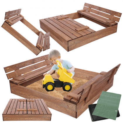 Piaskownica impregnowana 140x140 z ławeczkami AGRO PLANDEKA pokrywa oparcie