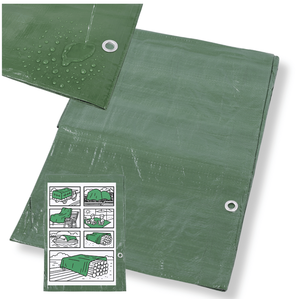Plandeka 2x2m Zielona Wodoodporna 120g z Oczkami – Gruba, Mocna i Uniwersalna