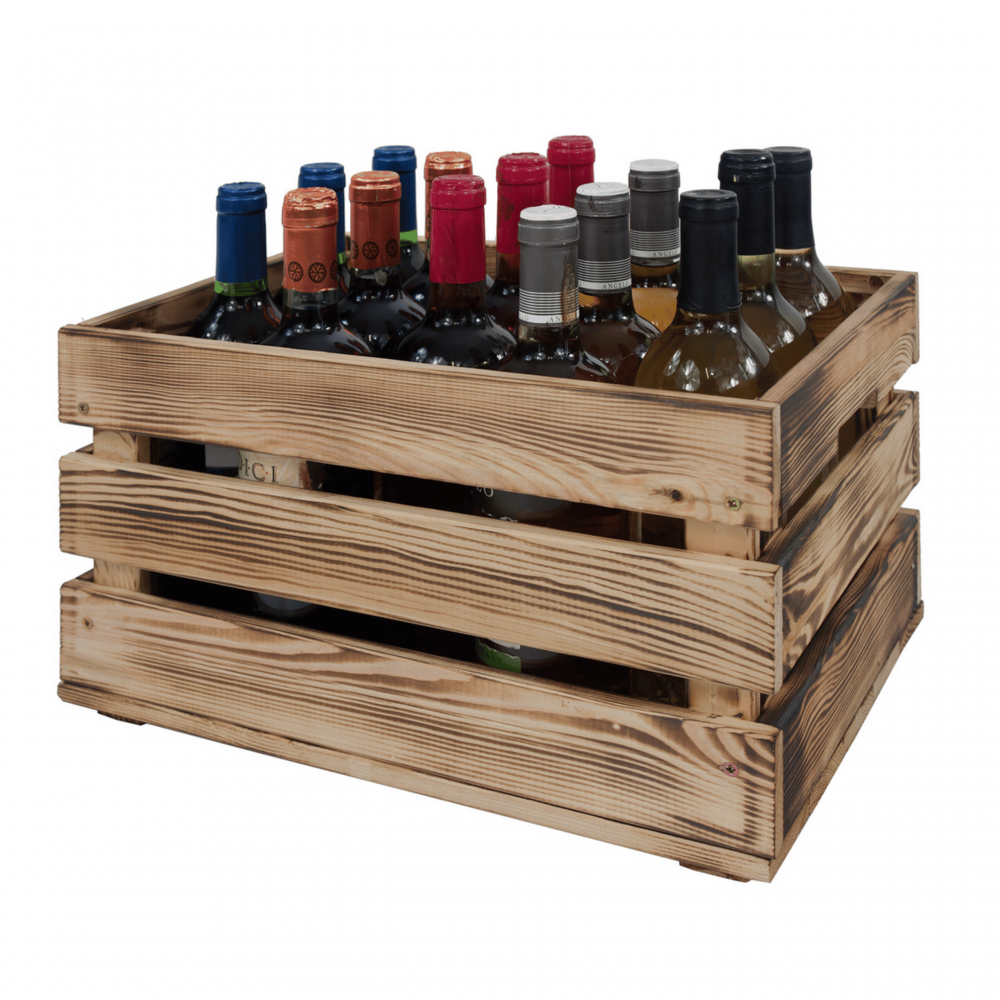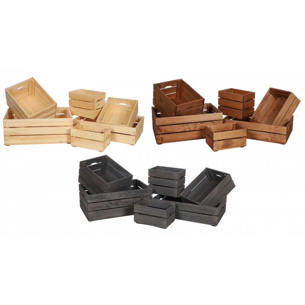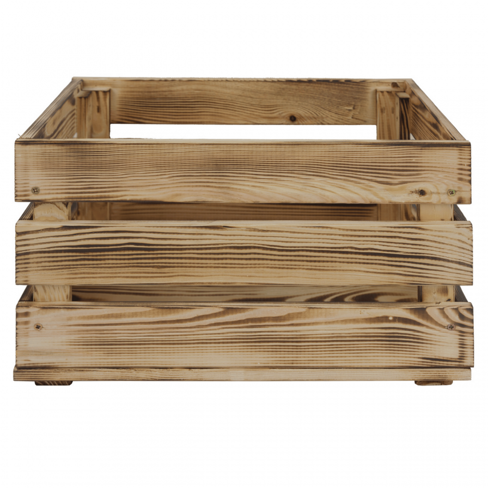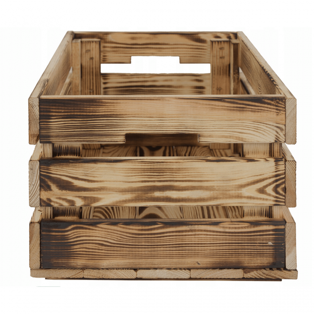 Skrzynka drewniana z rączkami na owoce, warzywa - nakładana jedna na drugą.