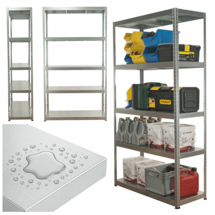 Nie musisz martwić się korozją ani puchnącymi płytami – metalowe półki i stelaż świetnie sprawdzają się w garażach, piwnicach, warsztatach i innych wilgotnych miejscach.