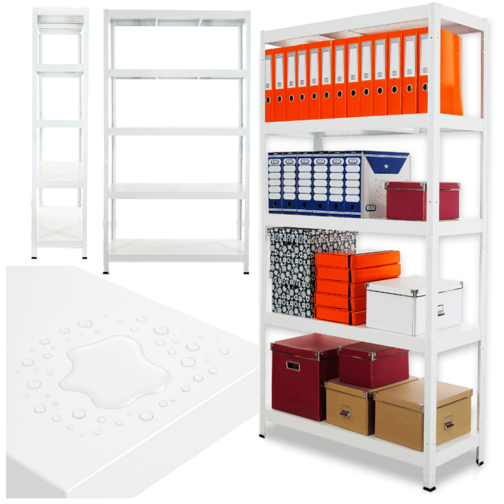 Nie musisz martwić się korozją ani puchnącymi płytami – metalowe półki i stelaż świetnie sprawdzają się w garażach, piwnicach, warsztatach i innych wilgotnych miejscach.