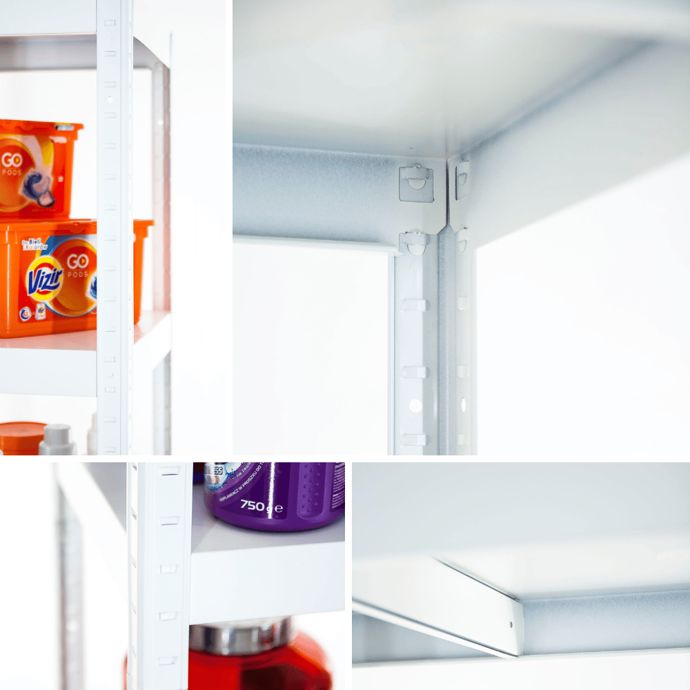 Metalowa, wodoodporna konstrukcja czyni go idealnym do wilgotnych miejsc. Przechowuj zapasy, chemię gospodarczą czy sprzęty AGD bez obaw o trwałość regału.